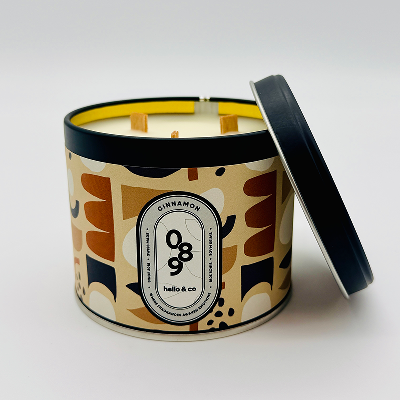 Deqore et embaume ton intérieur avec une bougie parfumée créée et fabriquée en Suisse par Hello Candle de façon artisanale. Ces bougies sont naturelles (cire de soja garantie sans OGM) et avec un design unique (métal avec étiquette et carton illustrés).