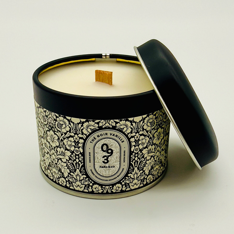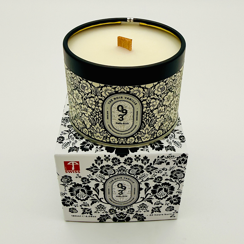 Deqore et embaume ton intérieur avec une bougie parfumée créée et fabriquée en Suisse par Hello Candle de façon artisanale. Ces bougies sont naturelles (cire de soja garantie sans OGM) et avec un design unique (métal avec étiquette et carton illustrés).