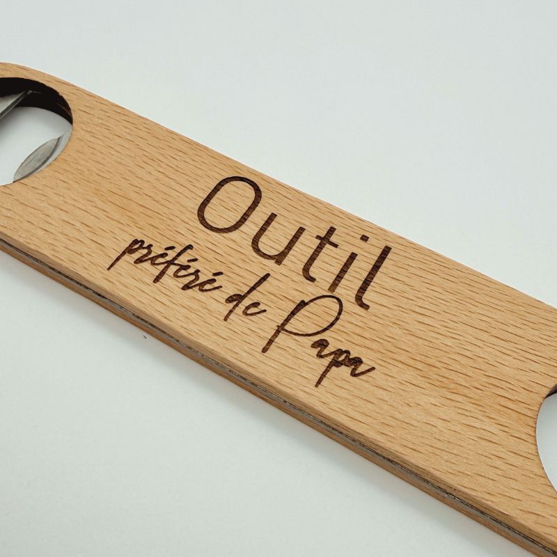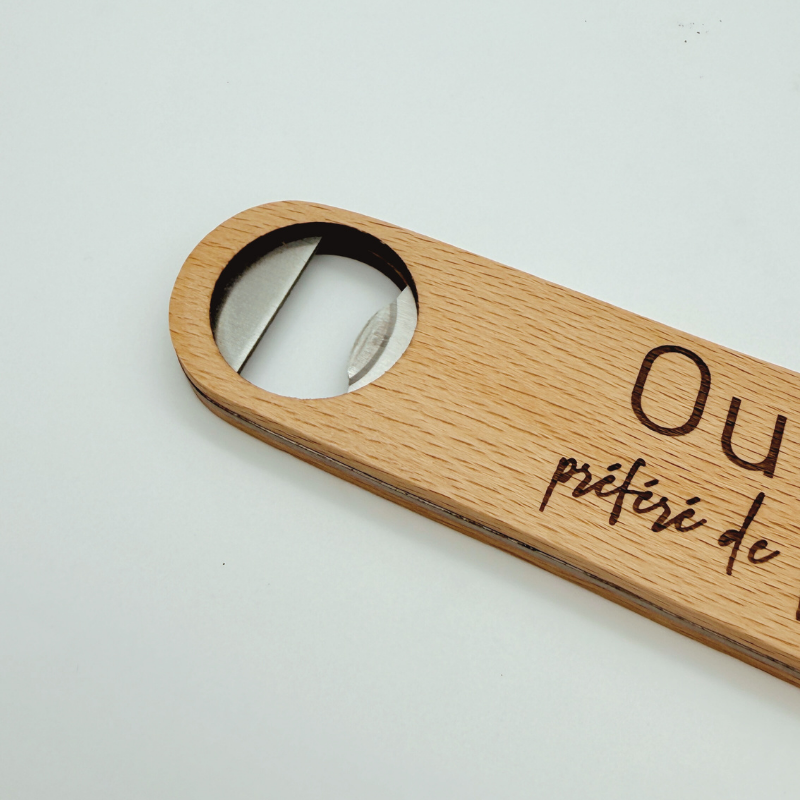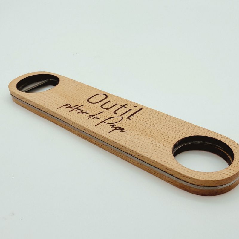 Simple et robuste, cet ouvre-bouteille en bois de hêtre peut ouvrir sans problème n'importe quelle bouteille de bière. Le bois provient de forêts gérées durablement. Il est parfait pour une utilisation quotidienne ou comme idée cadeau personnalisée.
