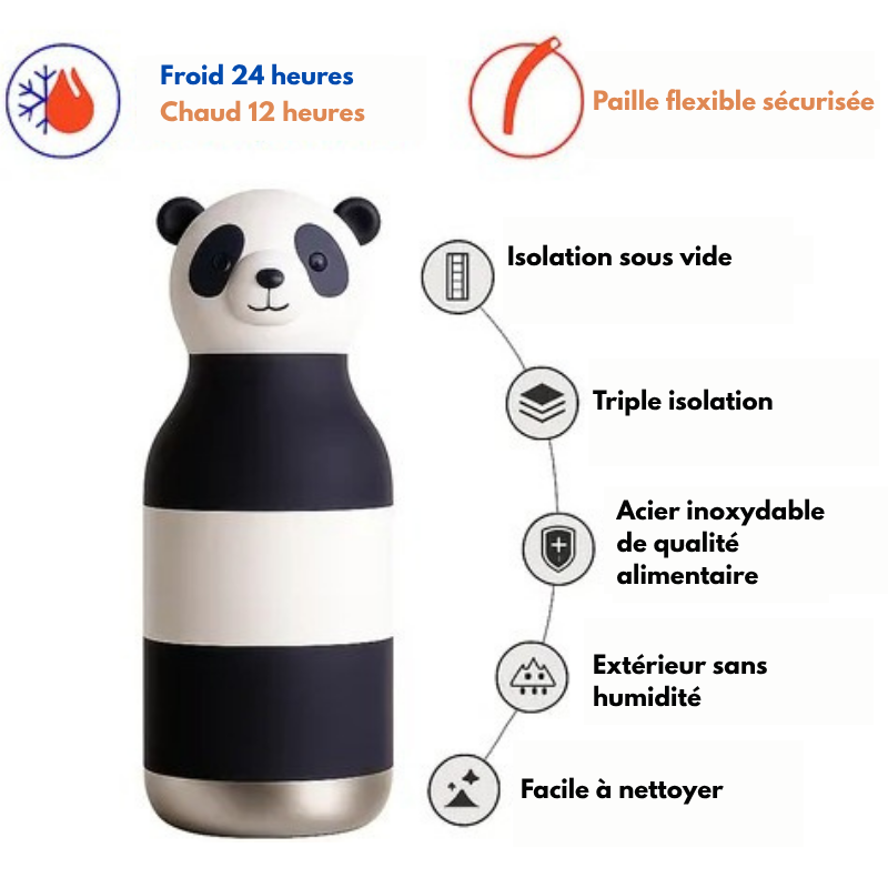 Cette adorable bouteille d'eau isotherme avec bouchon en silicone amovible et collectionnable rend le fait de boire agréable et amusant. Grâce à sa double paroi isolante sous vide, les boissons restent fraîches pendant 24 heures et chaudes pendant 12 heures. Le compagnon idéal pour toutes vos aventures.