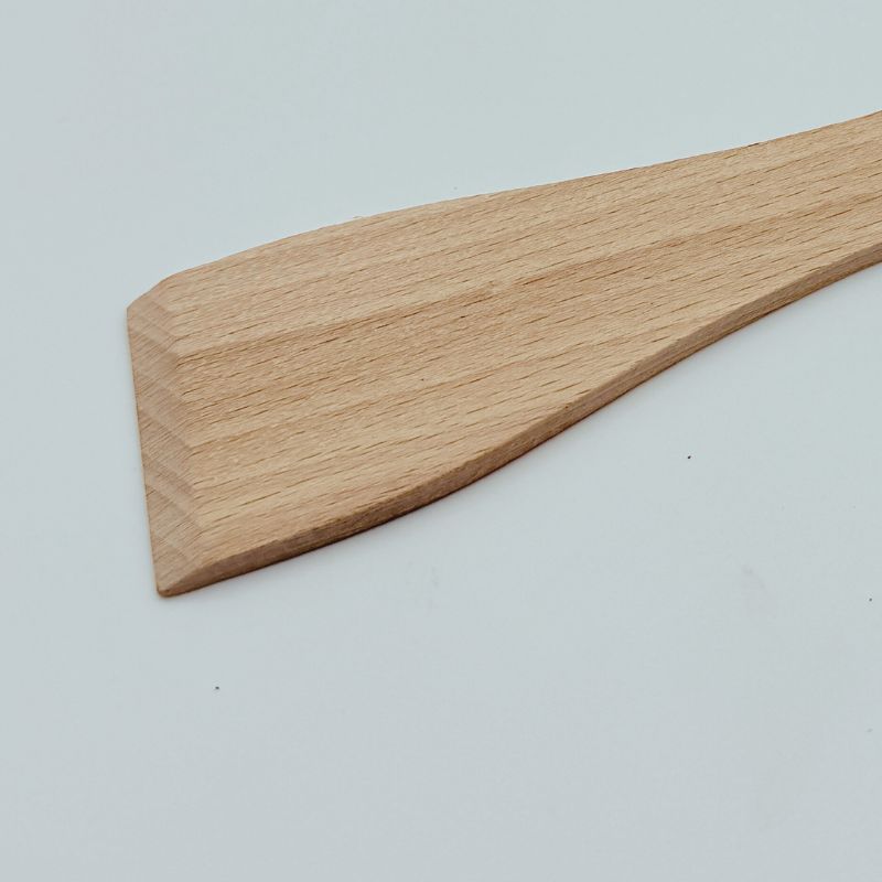 Spatule à raclette naturelle en bois de hêtre durable. Dimensions : 17.4 x 4.4 x 0.3 cm